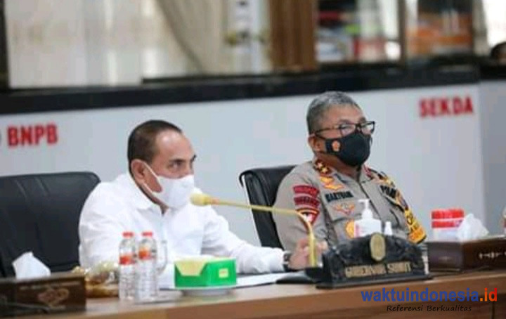 MEDAN, WAKTUINDONESIA – Gubernur Sumatera Utara (Sumut) Edy Rahmayadi dan Kapolda Irjen Martuani Sormin mengukuti rapat koordinasi (Rakor) penanganan covid -19 melalui video conference, di Pendapa Kantor Gubernur, Jumat (8/1/21).