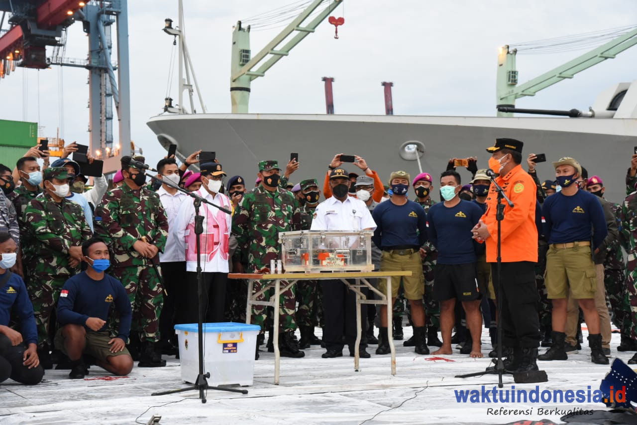 Prosesi penyerahan FDR tersebut diawali dengan konferensi pers oleh Menteri Perhubungan (Menhub) Budi Karya Sumadi, Panglima TNI Marsekal TNI Hadi Tjahjanto, Kabasarnas Marsdya TNI (Purn) Bagus Puruhito, dan Kepala Komite Nasional Keselamatan Transportasi (KNKT) Soerjanto Thahjono di Posko Terpadu JICT 2 Tanjung Priok, Selasa (12/1/2021) pukul 17.30 WIB.