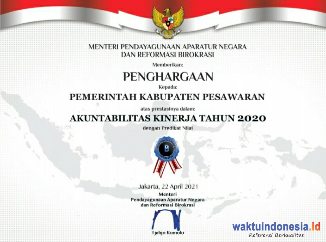 GEDONGTATAAN, WAKTUINDONESIA – Pemerintah Kabupaten pesawaran mendapat penghargaan predikat B hasil evaluasi atas Sistem Akuntablitas Kinerja Instansi Pemerintah (Sakip) Tahun 2020.