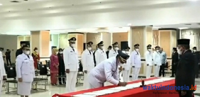 MEDAN, WAKTUINDONESIA — Gubernur Sumatera Utara (Sumut) Edy Rahmayadi resmi melantik Kepala Daerah (Kada) dan Wakil Kepala Daerah (Wakada) terpilih periode 2021-2024 hasil pilkada serentak tahun 2020 di rumah dinas gubernur, Jalan Sudirman, Medan, Senin (26/4/21) sekitra pukul 10.00 WIB dengan menerapkan protokol kesehatan Covid-19 ketat.
