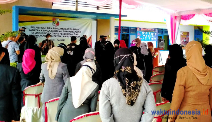 Kepala Dinas Pendidikan dan Kebudayaan Lampura, Mat Saleh menyebutkan 348 kepala sekolah yang dilantik terdiri dari 5 Kepala Sekolah TK, SD 279 Kepala Sekolah, SMP 64 Kepala Sekolah dan 8 pengawas. Pelantikan digelar di empat lokasi berbeda karena keterbatasan kapasitas gedung dan mengantisipasi penyebaran Covid-19.