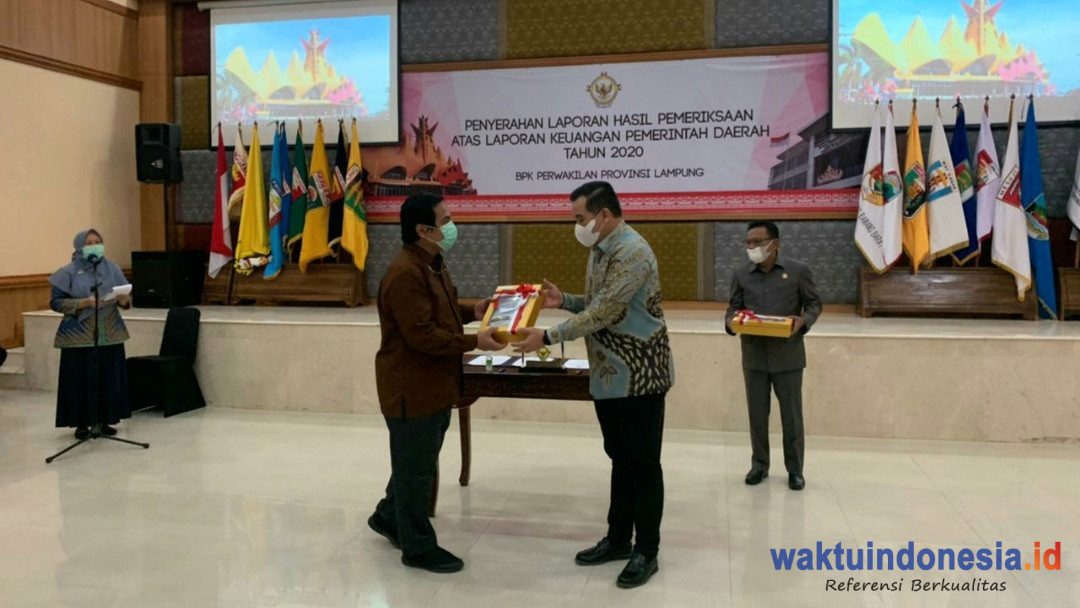 GEDONGTATAAN, WAKTUINDONESIA – Bupati Pesawaran Dendi Ramadhona lima kali terima penilaian opini Wajar Tanpa Pengecualian (WTP) secara beruntun yang diberikan oleh Badan Pemeriksaan Keuangan RI (BPK RI) perwakilan Lampung kepada Pemkab Pesawaran, Jumat (30/4/2021).