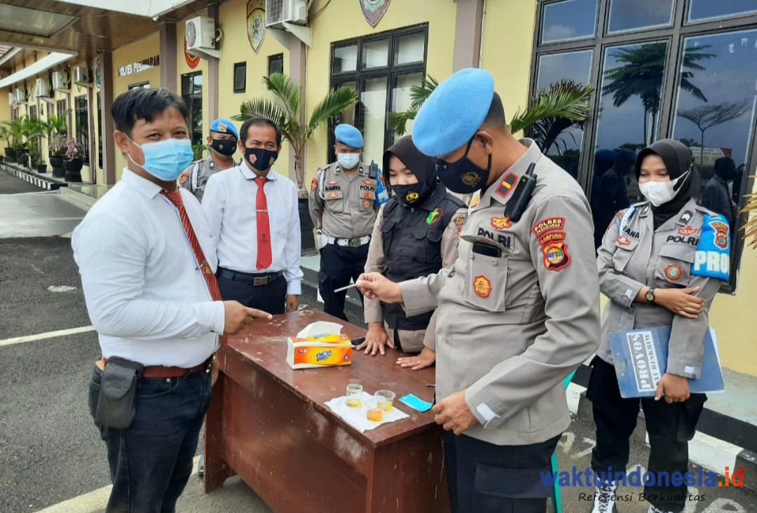 GEDONGTATAAN, WAKTUINDONESIA – Guna mengantisipasi penyalahgunaan narkotika, anggota Satuan Reserse Narkoba Polres Pesawaran melaksanakan tes urine, Senin (3/5/2021).