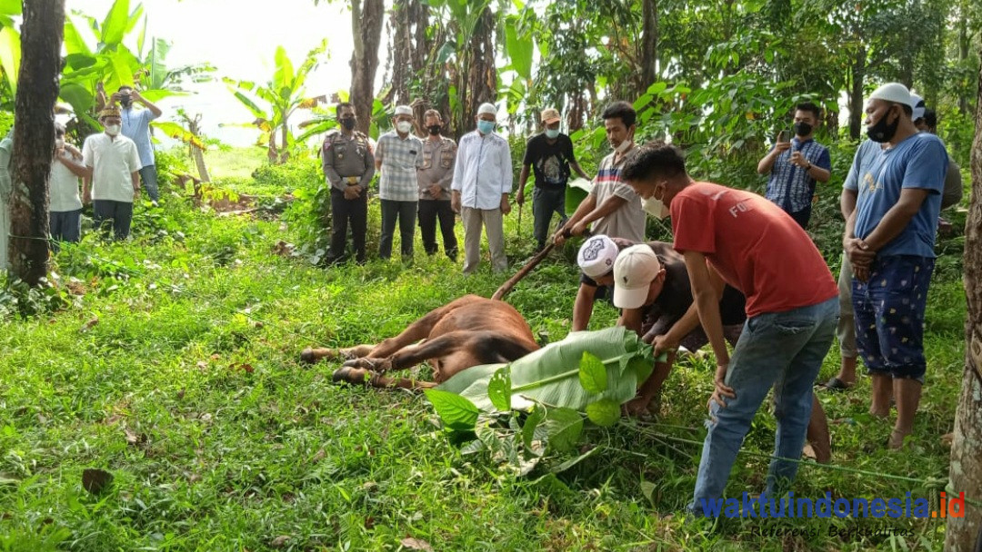 Pemotongan hewan qurban dilakukan dihalaman Masjid Mapolres setempat, Selasa (20/7/2021).