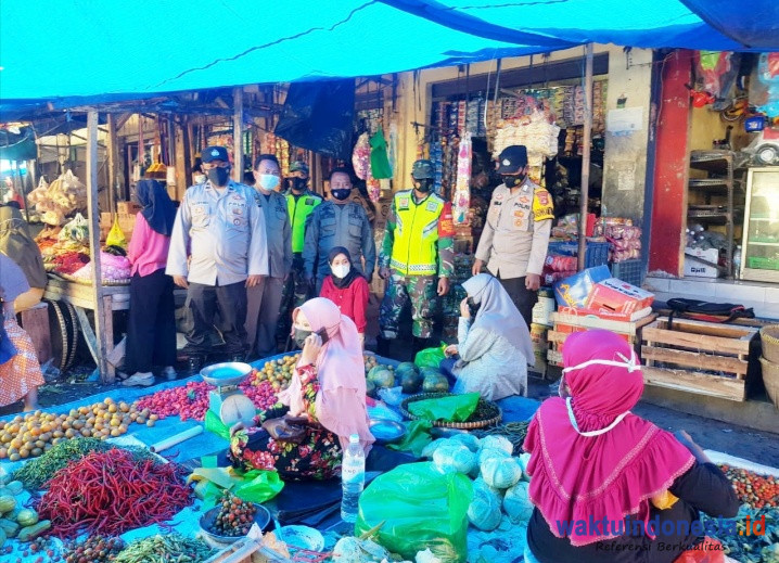 KEDONDONG, WAKTUINDONESIA– Anggota Polsek Kedondong, Pesawaran, Lampung bersama dua anggota TNI dan dua Satpol-PP menggelar Operasi Yustisi guna mengantisipasi penyebaran Covid-19 di Pasar Kedondong, Bank BRI dan warung-warung makan di Desa Pasar Baru Kecamatan Kedondong, Senin (26/7/21).