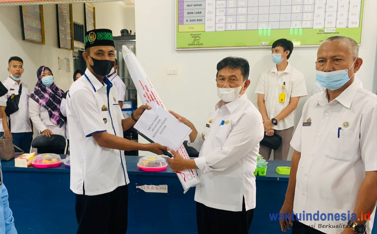 KRUI, WAKTUINDONESIA – Wakil Bupati Pesisir Barat (Pesibar), Lampung, A Zulqoini Syarif, menyerahkan sertifikat tanah dalam program Pendaftaran Tanah Sistematis Lengkap (PTSL), di Balai Pekon Biha Kecamatan Pesisir Selatan, Rabu (1/9).