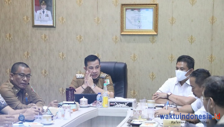 GEDUNGTATAAN, WAKTUINDONESIA – Ketua Umum Koperasi Himpunan Kerukunan Tani Indonesia (HKTI) Tani Makmur Sejahtera Provinsi Lampung Friandi Irawan beraudiensi dengan Bupati Kabupaten Pesawaran Dendi Ramadhona dalam membahas program pertanian, Senin (29/11/21).