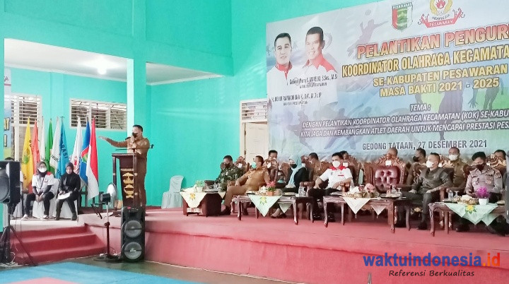 GEDONGTATAAN, WAKTUINDONESIA – Bupati Kabupaten Pesawaran, Dendi Ramadhona menghadiri acara pelantikan pengurus Koordinator Olahraga Kecamatan (KOK) periode 2021-2025 yang tersebar di 11 Kecamatan yang ada di Bumi Andan Jejam.