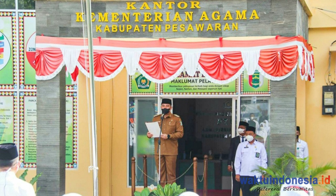 GEDONGTATAAN, WAKTUINDONESIA – Bupati Pesawaran Dendi Ramadhona, menjadi pembina upacara Peringatan Hari Amal Bhakti Kementrian Agama Republik Indonesia ke-76 Tahun 2022, Tingkat Kabupaten Pesawaran, Senin 3 Desember 2022.