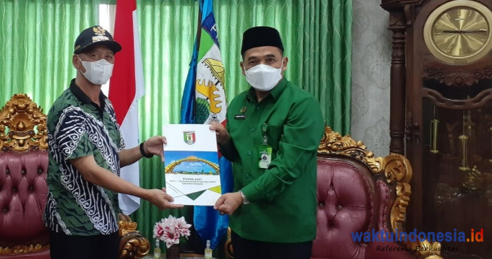 Surat pernyataan hibah diserahkan Bupati Pringsewu Sujadi Saddat dan diterima langsung Kepala Kantor Kemenag Kabupaten Pringsewu Ahmad Rifa’i di Ruang Kerja Bupati, Kamis 13 Desember 2022