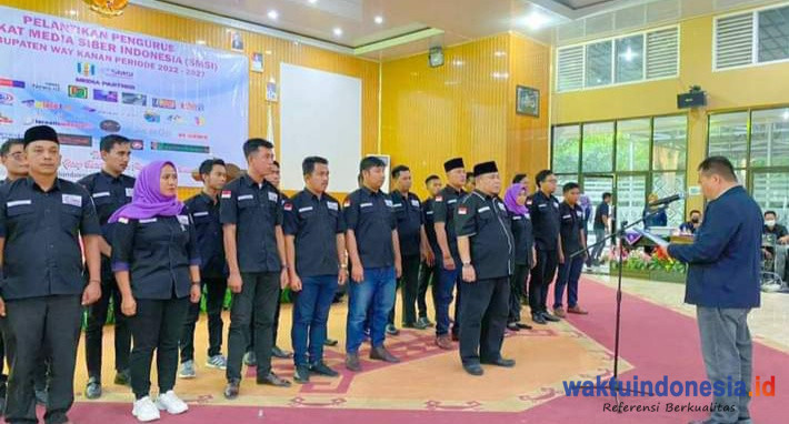 Pengurus Serikat Media Siber Indonesia (SMSI) Kabupaten Way Kanan Provinsi Lampung periode 2022-2027 dilantik Ketua SMSI Lampung Donny Irawan di GSG pemkab setempat, Selasa, 12 Juli 2022.