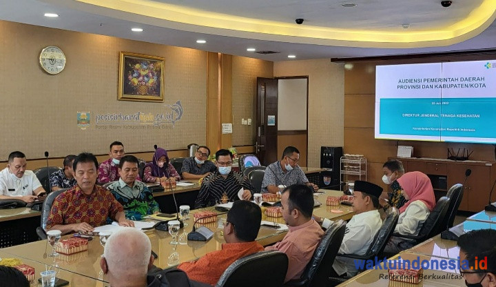 KRUI, WAKTUINDONESIA – Pemerintah Kabupaten (Pemkab) Pesisir Barat (Pesibar), dipimpin langsung Asisten I Bidang Pemerintahan dan Kesejahteraan Rakyat, Audi Marpi, didampingi Plt Asisten III Bidang Administrasi Umum, Jon Edwar, Kepala Dinas Kesehatan (Dinkes), Tedi Zadmiko, Plt Kabag Hukum, Edwin Kastolani Burtha, Sekretaris Badan Kepegawaian dan Pengembangan Sumberdaya Manusia (BKPSDM), Kabid Anggaran Badan Pengelolaan Keuangan dan Aset Daerah (BPKAD), melakukan lawatan ke Direktorat Jendral (Dirjen) Tenaga Kesehatan Kementerian Kesehatan (Kemenkes) Republik Indonesia, Jumat, 22 Juli 2022.