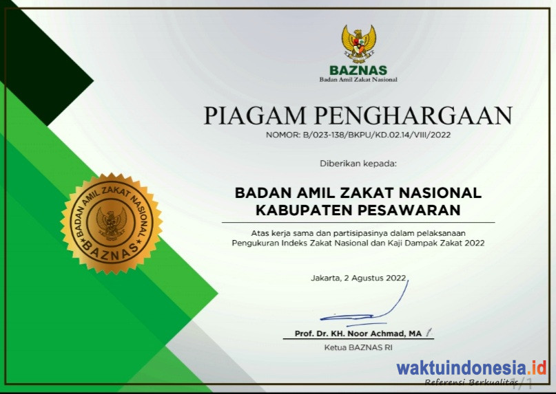 Dirinya menjelaskan, pada tahun ini BAZNAS Pesawaran juga mendapatkan penghargaan dari BAZNAS RI, terkait pengukuran Indeks Zakat Nasional dan dampak Zakat yang dirasakan bagi masyarakat yang menerima.