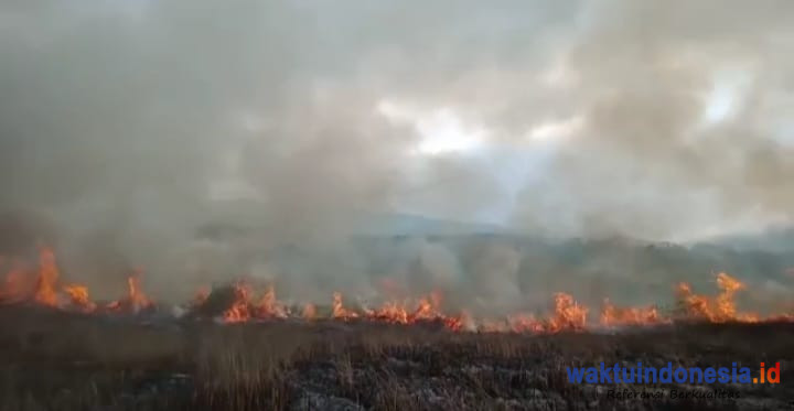 LAMPUNG BARAT, WAKTUINDONESIA – Sekitar 20 hektar (ha) padang ilalang atau padang savana di Danau Asam dan Danau Lebar di Pekon Sukamarga Kecamatan Souh Kabupaten Lampung Barat terbakar, Salasa, 11 Oktober 2022 sekitar pukul 11.30 WIB.