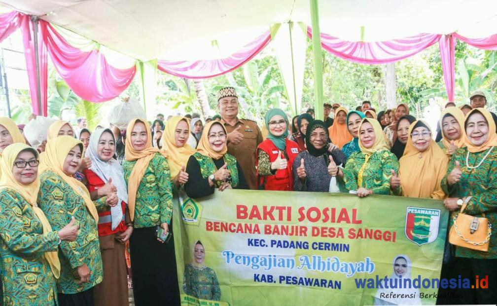 PADANG CERMIN, WAKTUINDONESIA – Penasehat DPD Pengajian Al-Hidayah sekaligus Ketua PMI Kabupaten Pesawaran Nanda Indira Dendi berikan bantuan kepada warga masyarakat terdampak banjir di Desa Sanggi Kecamatan Padang Cermin.
