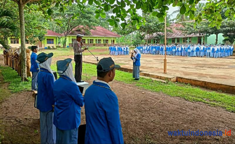 GEDONG TATAAN, WAKTUINDONESIA – Unit Satuan Lalu Lintas Polres Pesawaran dan Bhabinkamtibmas Polsek Gedong Tataan Polres Pesawaran Polda Lampung memimpin apel senin pagi di lapangan SMAN 2 Gedong Tataan.