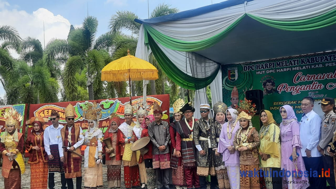 GEDONGTATAAN, WAKTUINDONESIA – Dalam rangka memperingati Hari Ulang Tahun (HUT) yang ke-2 Himpunan Ahli Rias Pengantin Indonesia (HARPI) Melati Kabupaten Pesawaran mengelar karnaval pengantin adat. Kegiatan digelar di Museum Transmigrasi Desa Bagelen Kecamatan Gedong Tataan kabupaten setempat, Rabu 14 April 2023.