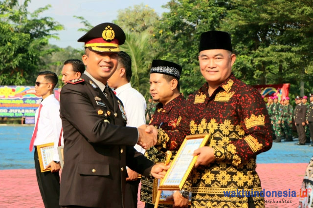 Penyerahan penghargaan tersebut dilakukan saat menggelar upacara peringatan Hari Bhayangkara ke-77 di lapangan Mapolres Pesawaran, Sabtu 1 Juli 2023.