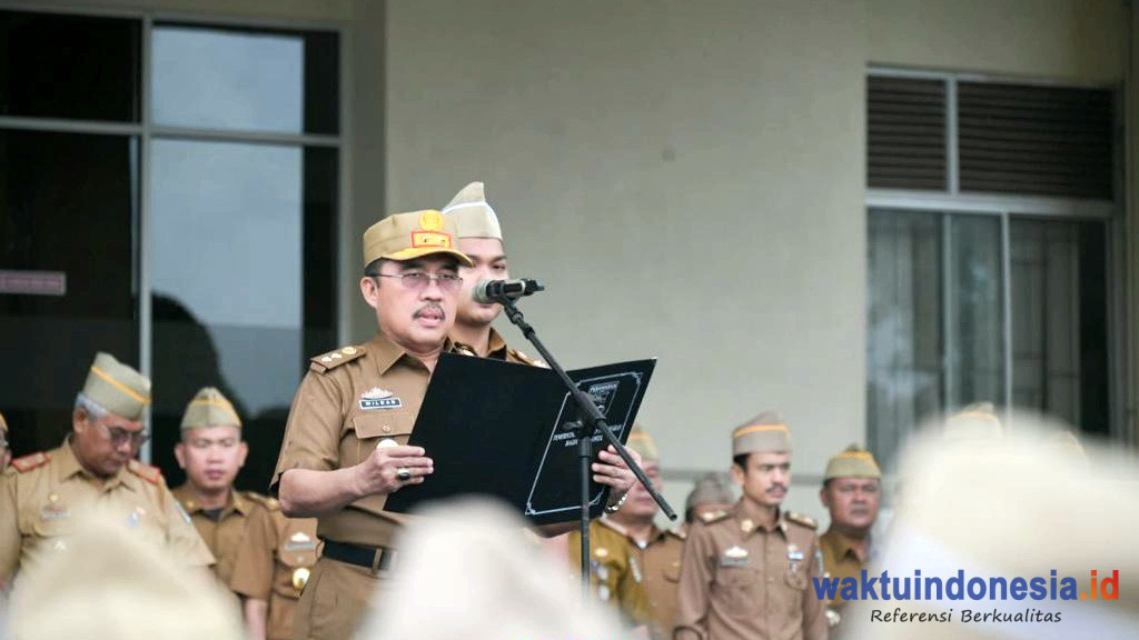Sekdakab Pesawaran Wildan saat pimpin upacara bendera/Foto: Ist