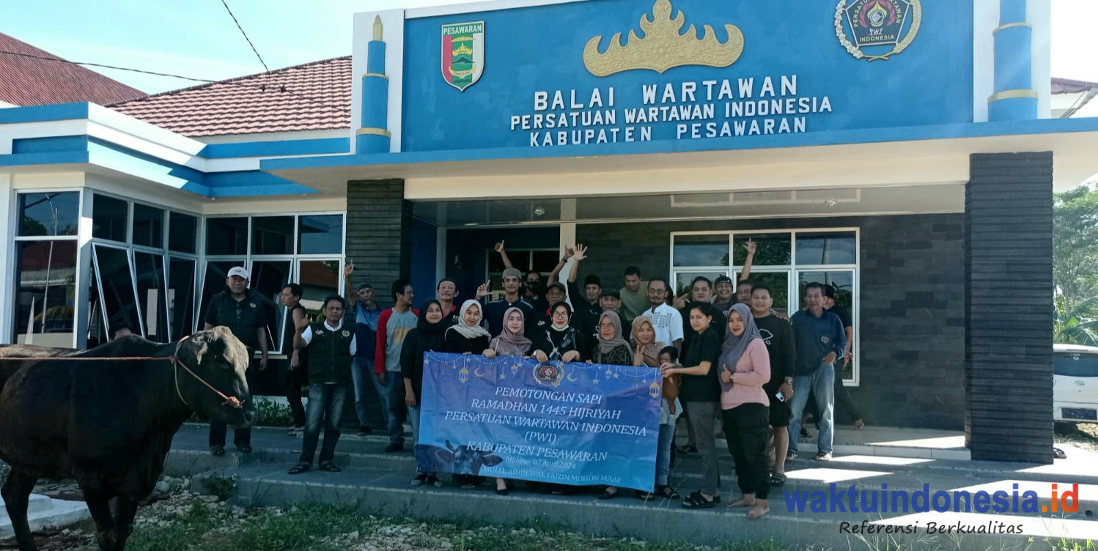WAKTUINDONESIA – H-3 menjelang Hari Raya Idul Fitri 1445 Hijriah tahun 2024, Persatuan Wartawan Indonesia (PWI) Kabupaten Pesawaran menyembelih satu ekor sapi.