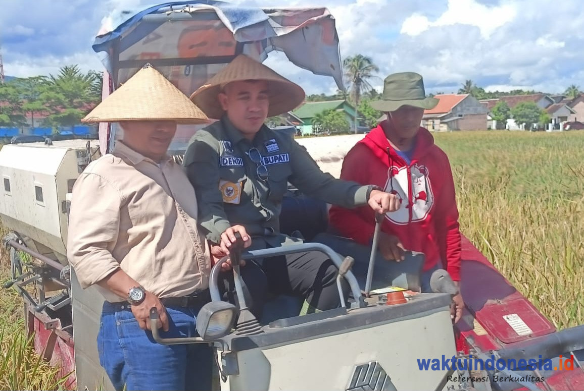 WAKTUINDONESIA – Bupati Pesawaran Dendi Ramadhona ikut dalam panen raya padi serentak di Desa Kutoarjo, Kecamatan Gedong Tataan kabupaten setempat, Senin 7 April 2025.