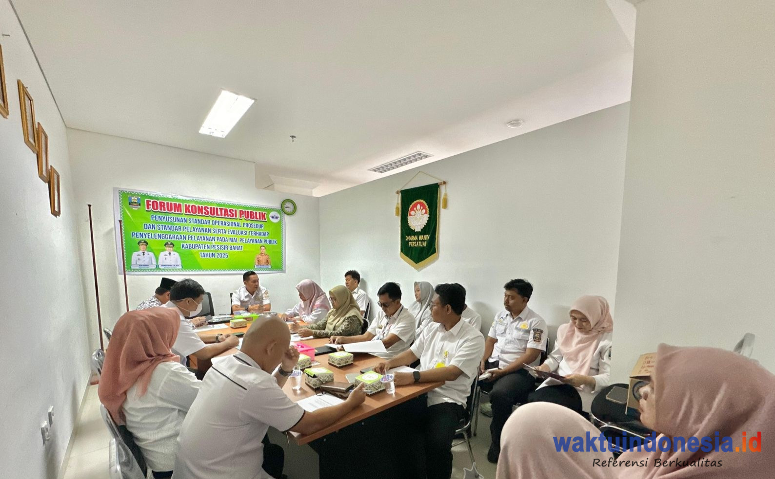 WAKTUINDONESIA, KRUI -Pemerintah Kabupaten (Pemkab) Pesisir Barat (Pesibar) melalui Dinas Penanaman Modal Pelayanan Terpadu Satu Pintu (DPMPTSP) menggelar Forum Konsultasi Publik (FKP) penyusunan Standar Operasinal Prosedur (SOP) dan Standar Pelayanan (SP), serta evaluasi terhadap penyelenggaraan pelayanan pada Mall Pelayanan Publik (MPP) Tahun 2025, di ruang rapat DPMPTSP, Rabu (18/6/2025).